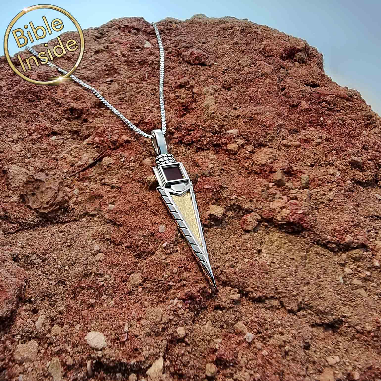 Christian men's gift – Christianity arrow necklace with microchip Bible