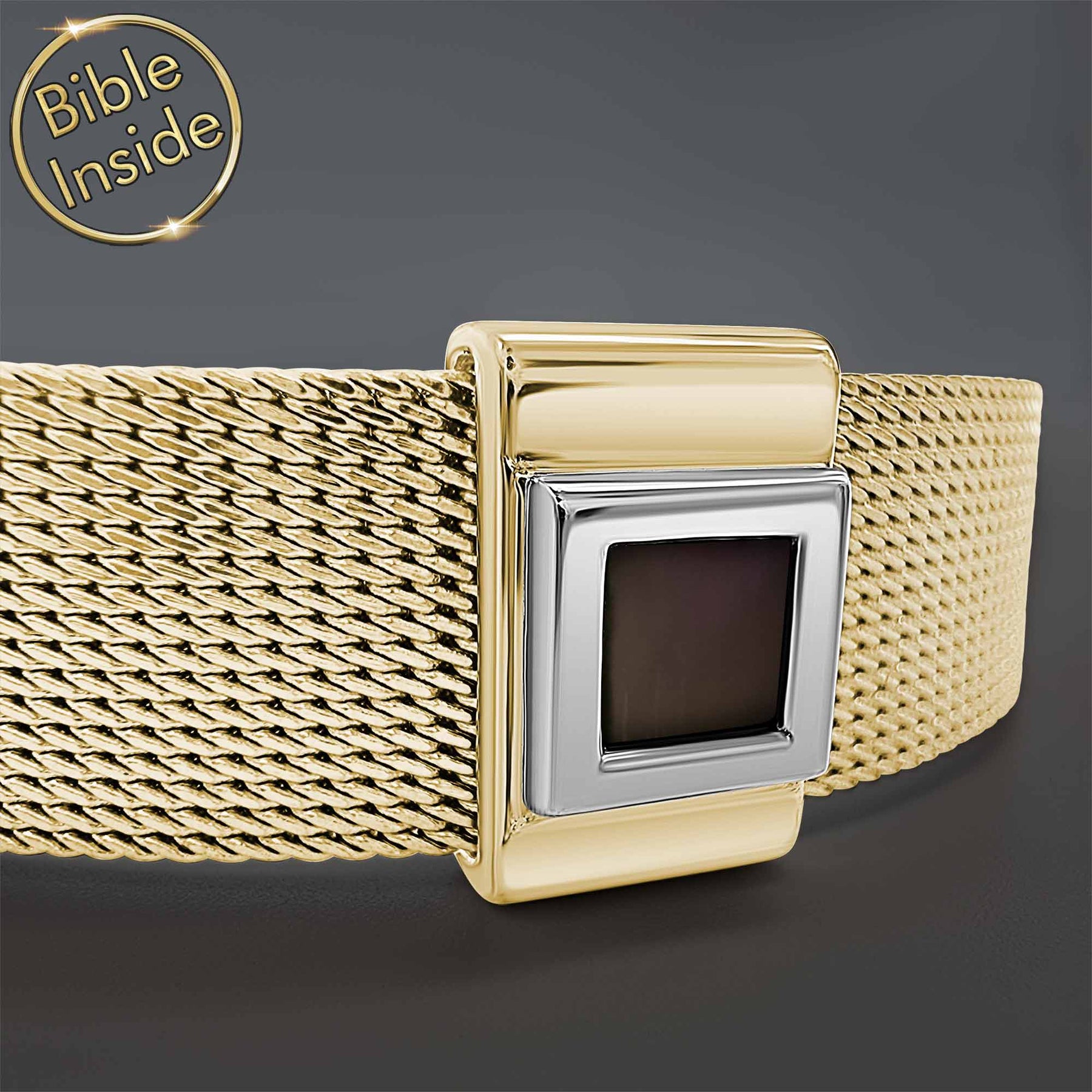 Mini Bible With Complete New Testament - Knox (1) Bracelet (Gold Finish Strap)