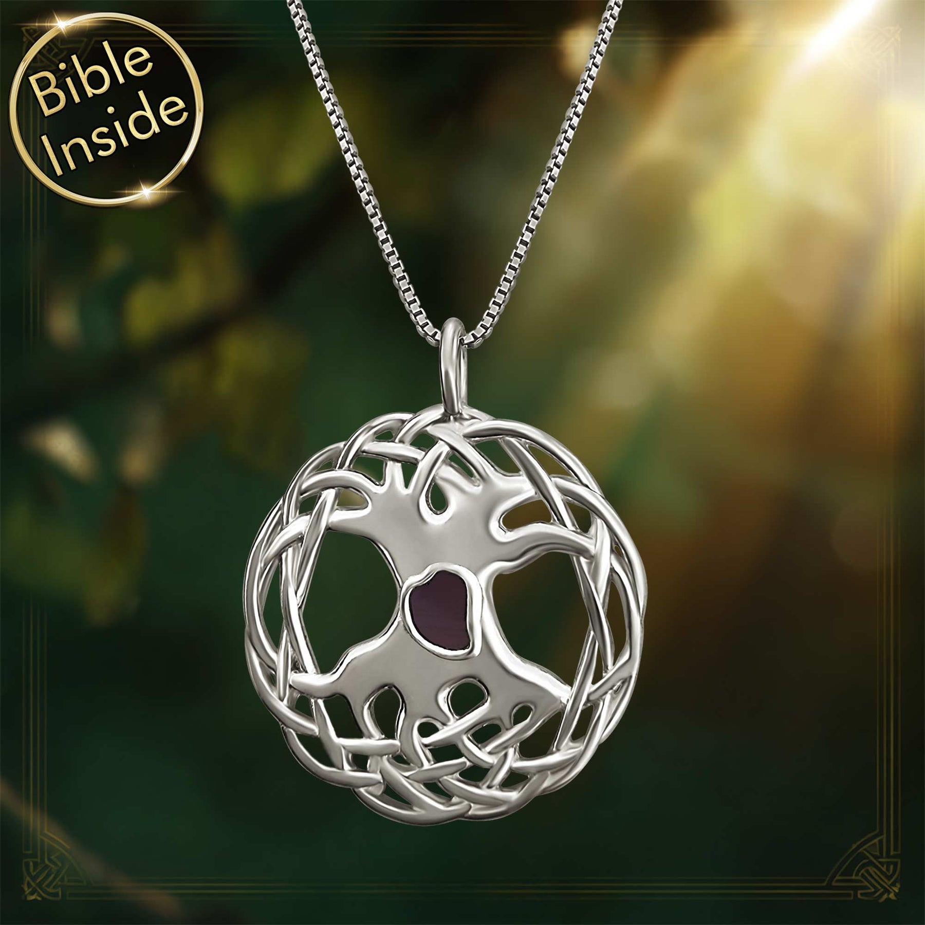 Christian Gift for Men With Nano Bible - Celtic Tree Of Life - Elowen Necklace