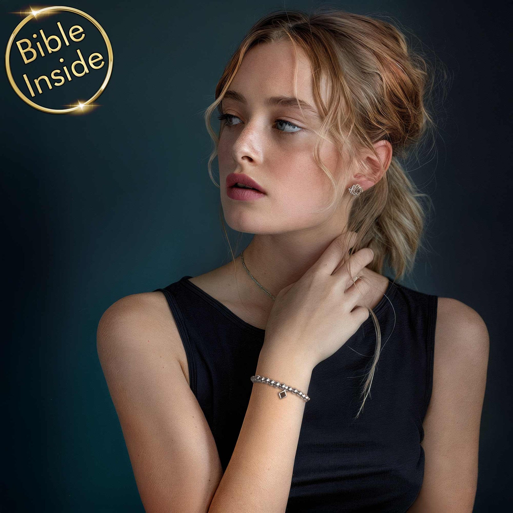 This jewelry piece for Christians transforms how you carry your faith. The Bubble-6 bracelet holds the complete New Testament engraved on a tiny 0.2"/0.5cm chip, visible only under a 1000x metallurgical microscope. This micro Bible technology brings scripture directly to your wrist in the most elegant way.