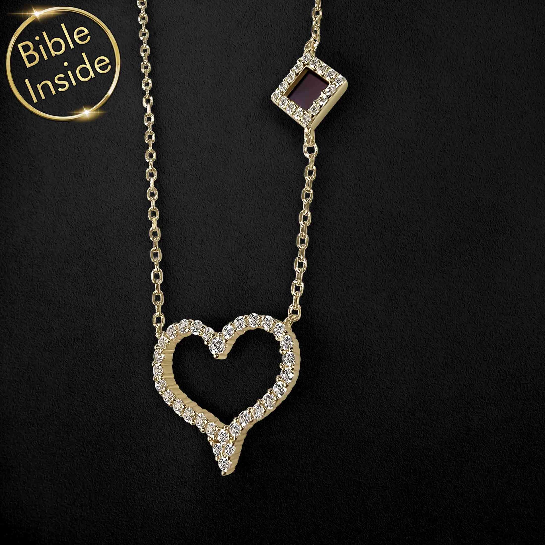 Each of our jewelry pieces has a hidden treasure: the entire Bible written inside the brown square. Our designs complement the holy Bible, wrapping it in beautiful jewelry.