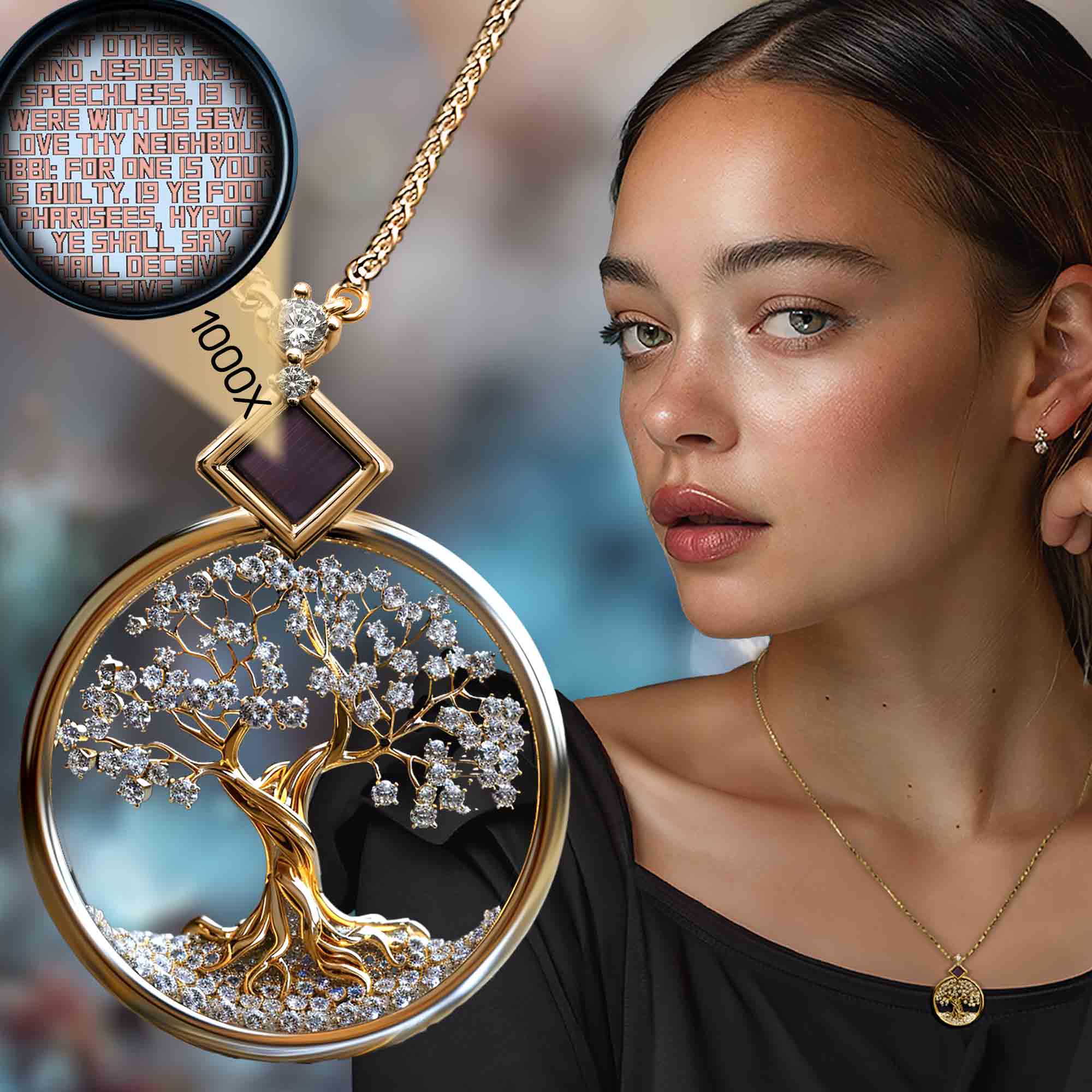 What truly sets our tree of life necklaces apart is the unparalleled level of craftsmanship in each piece. We've perfected the delicate art of creating intricate tree designs that not only captivate the eye but also safely house microscopic scripture. This dual achievement—artistic beauty and technological innovation—makes our collection unique in the jewelry world.