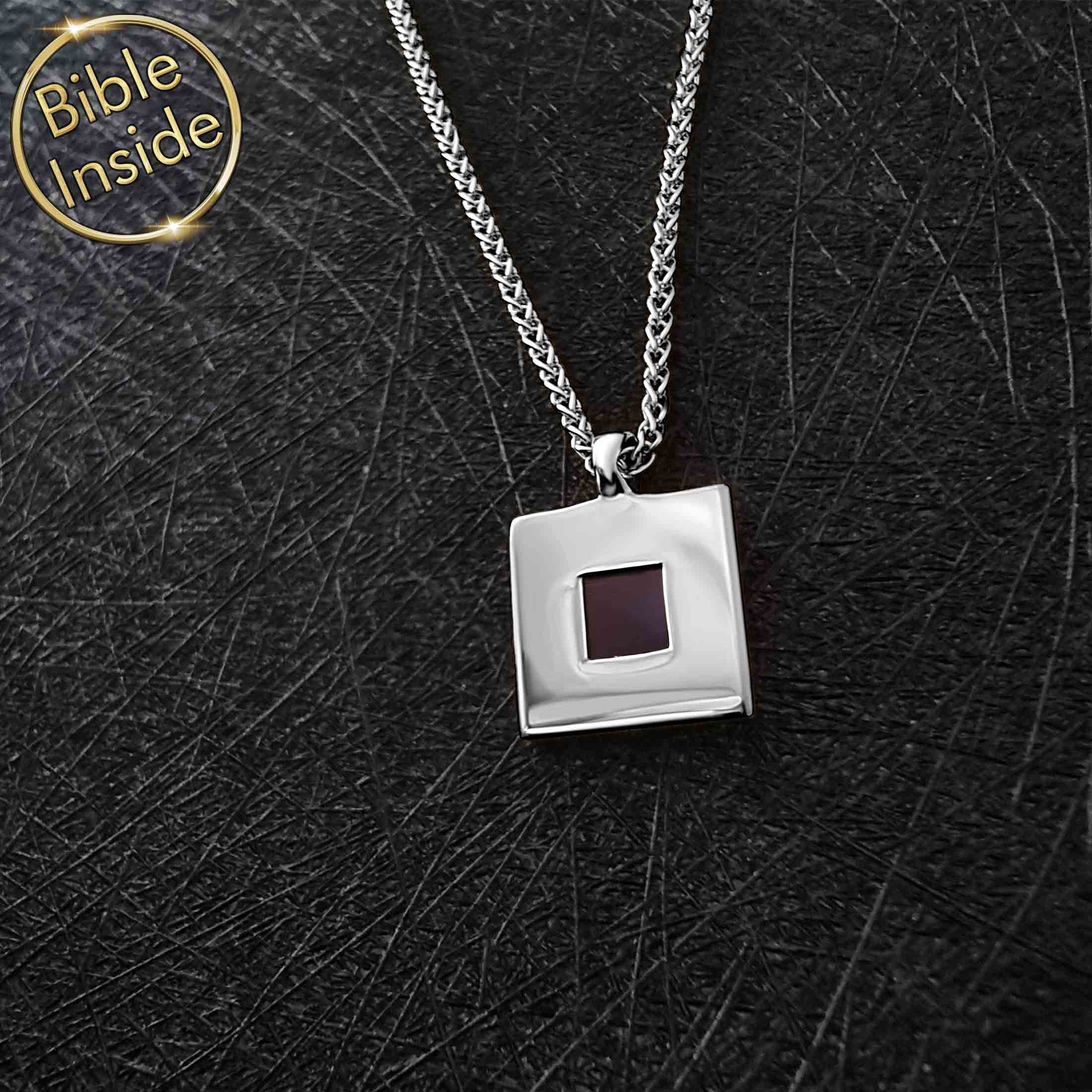 1. What makes this Valentine pendant unique for Christian men? This cubo valentine pendant combines geometric symbolism with the New Testament on a nano Bible chip. The square valentine pendant represents the four Gospels, making it both stylish and devotional.